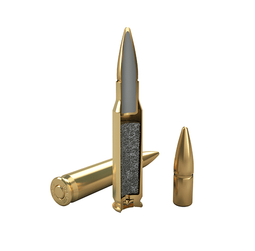 Projétil de construção semelhante ao mililar, dotado de grande penetração e longo alcance. Também utilizado para caça de animais de pêlo e no tiro esportivo.