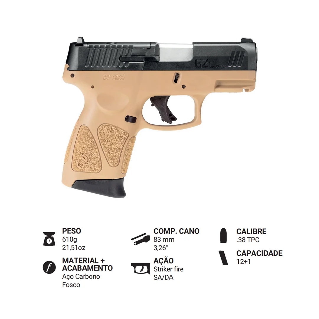 Pistola G2C .38 TPC 2X12T CAFO TAN: Potência, Versatilidade e Estilo para Defesa Pessoal